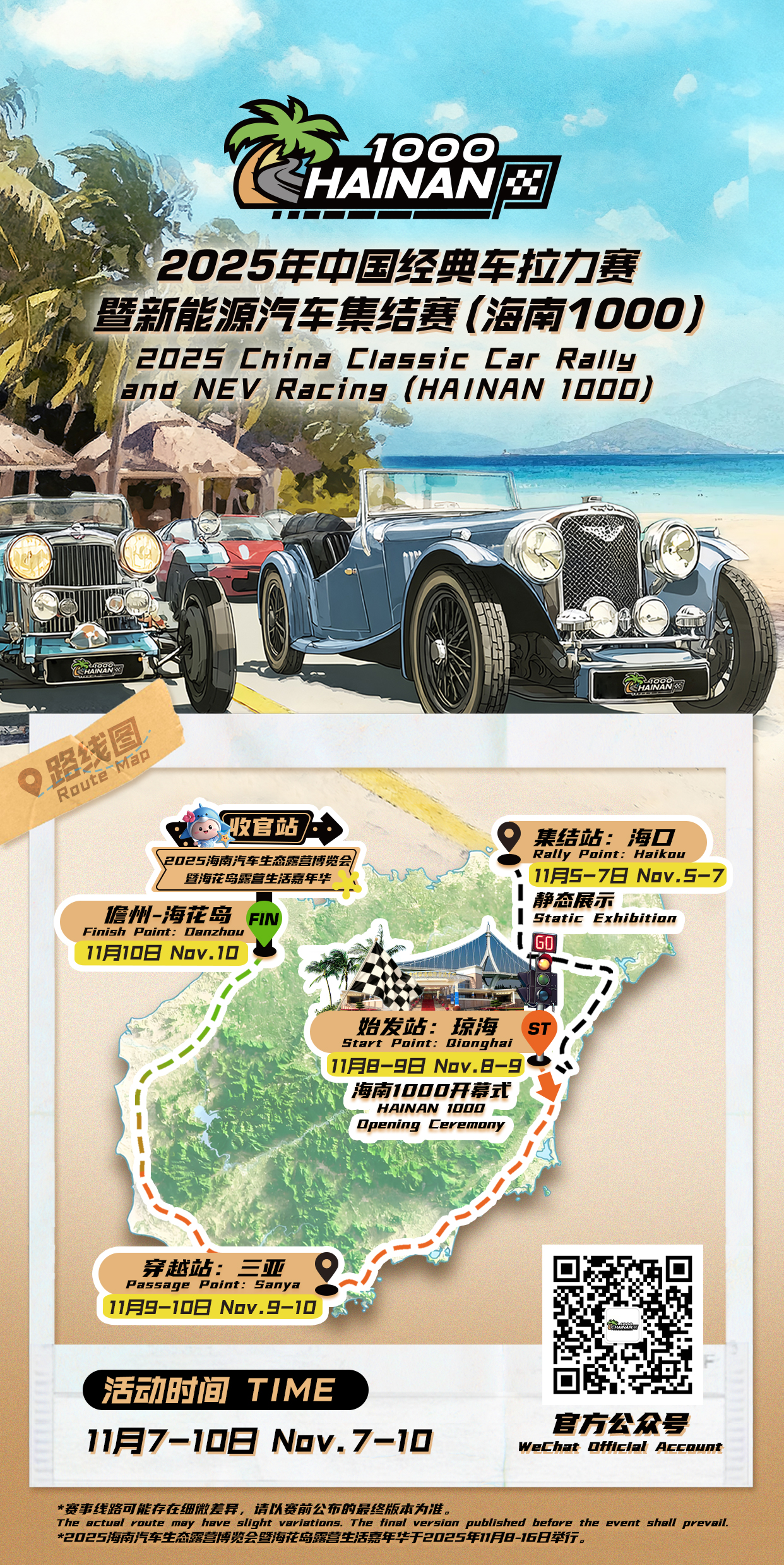 2025中国经典车拉力赛暨新能源汽车集结赛(HAINAN 1000),不仅是一场汽车文化的顶级盛会,更是推进文体旅深度融合、服务海南自贸港建设的重要实践。一场承载着经典情怀与绿色科技的穿越之旅即将开启,必将为海南增添一张熠熠生辉的“旅游+体育”新名片。